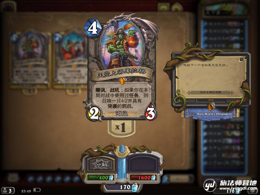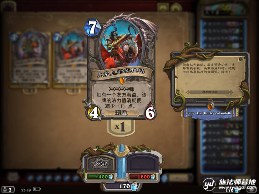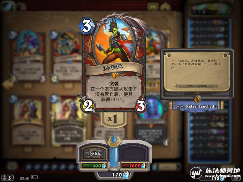 因为自己英雄也是洛卡拉,所以带上了(不是)咳咳,正经说,这也是一张帮助我们滚雪球的好卡,对付快攻时很好用,相互交换的情况下自己场面愈来愈大,纯纯的优势好不好!不过因为是橙卡,并且百分之九十的情况和海南船长(呸呸,南海船长)效果一致,所以大家伙还是谨慎考虑吧。
