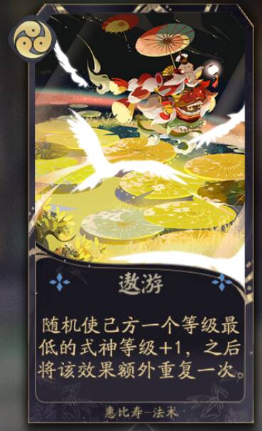 遨游:配合十日戎海之惠的后期牌,3勾就算不搭配其它牌直接使用也能让我们式神尽快全体3勾启动十日戎,如果我们全体3勾后抽到可以配合十日戎随机BUFF式神两次。