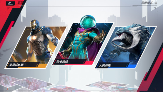 PVE有三种,英雄试炼场,关卡挑战和人机训练: