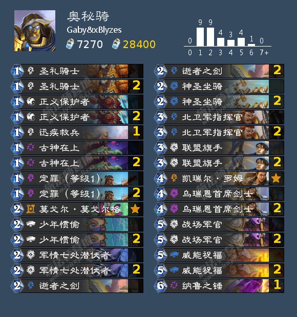 将污手骑替换成奥秘骑可谓是本次重新交牌下最大的成果。相比污手骑,奥秘骑在对阵自闭卡组的时候则更加效率。首先奥秘的干扰能在一定程度上影响对方的节奏,古神在上在这个充满任务和法术的环境里。当前主流卡组缺乏有效的手段处理被威能祝福buff过的隐身怪,随时会面临被战场军官带走的风险,在xBlyzes对阵Bozzzton的对局里能很好地印证这一点。而在对阵快攻的时候,11圣盾加上威能祝福也有机会能抑制对手的攻势。虽然污手骑的防护长袍也能直线拉高对于慢速卡组的能力,加入古墓卫士配合加攻也能让猎人等苦不堪言,但整体而言,奥秘骑还是比污手骑更加综合以及灵活。然而薛喜的奥秘骑遇到了grr带冰爆冲击以及退化的法师。虽然骑士多个回合都叫杀了法师,但是在grr的谨慎操纵下一次次化险为夷。即便如此,奥秘骑打慢速卡组的优势还是显而易见的。