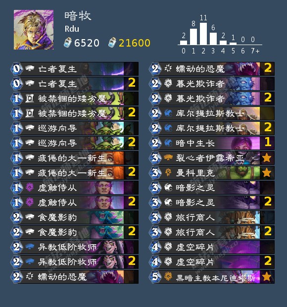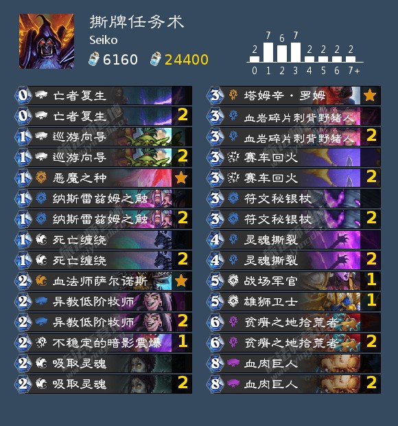 GM们对于术士和瞎子达成了统一的认可,几乎全是吸血瞎和各式任务术这环境两大巨头+另外两套的lineup阵容,即便是像Rdu这样携带了冷门的暗牧相对针对环境里“第三巨头”任务法也没有放弃这两套全面的卡组。不过在构筑上吸血瞎的构筑算上敲定了,几乎只有2张左右根据个人喜好的调整空间,但各服对于术士的形态产生了差异相当大的地域特色:亚服普遍推崇任务园,美服则是偏爱控场能力更强的撕牌任务术,而欧服则是介于二者之间并更加喜爱用426启动更快的纯任务术。除此以外的第三第四套卡组的常见选项是T7猎和任务法,而再往后有受众的则是是骑士和萨满。暗牧、任务贼和安娜德等则是作为特定的counter卡组出现。