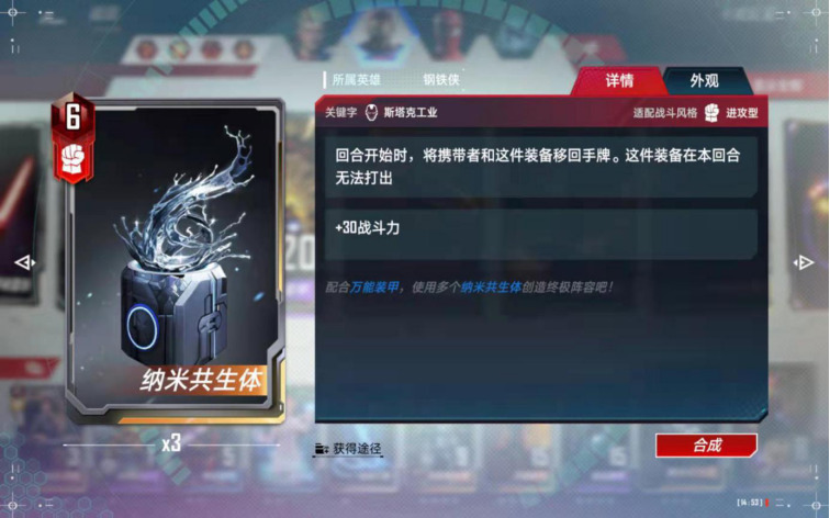 纳米是可以大幅度提高本卡组上限的装备,有了纳米以后,究极钢铁侠和隐匿装甲就可以重复打出了,纳米按照以下顺序给随从优先佩戴: