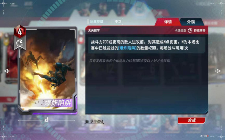 这张卡佩戴给隐匿装甲或者究极钢铁侠后非常给力,可以重复打出给万能增加伤害。