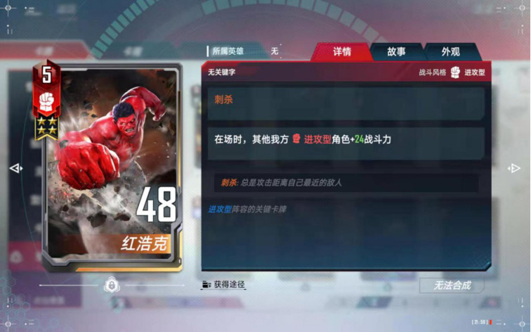 这个技能适合在中期找到万能以前锁血,是个苟且技能,而且,在红浩克在场的时候,打出一星卡牌也可以获得红浩克buff的一半。
