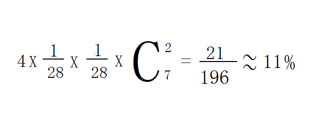 三级商店刷新4张卡牌,二费和三费非锁定和锁定卡池一共有16+12=28种卡牌。也就是说,第二回合同时拿到两张三费高攻击卡牌的概率是:
