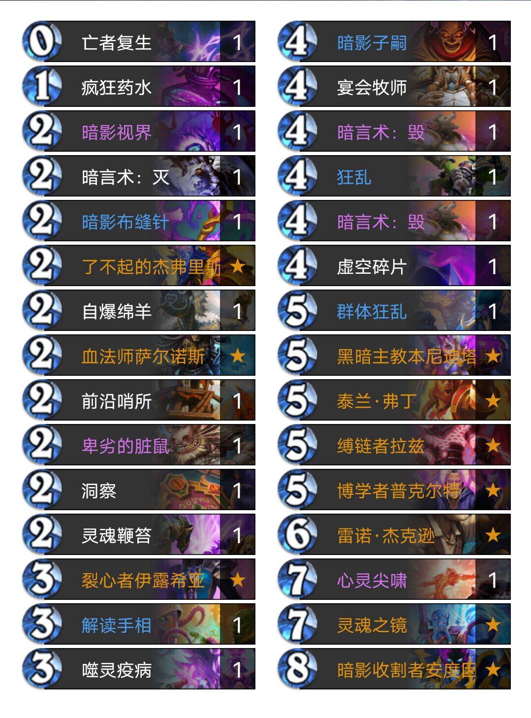 血法师——法强加1配合吸血法术非常好用,而且亡语有过牌,宇宙牧是比较缺过牌的。
