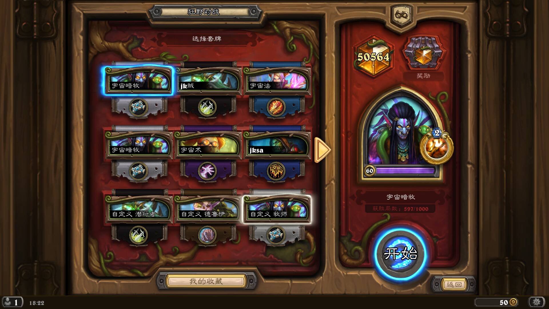 整体构筑和常规宇宙牧一致,但是比正统宇宙牧可能更加适应这个环境。上个版本也就是暴风城刚上线的版本,狂野马速拉满,控制卡组根本玩不下去,刚看到补丁时觉得很气愤,觉得这是无效补丁,实际根据我一天打下来的感受初步判定为有效补丁。