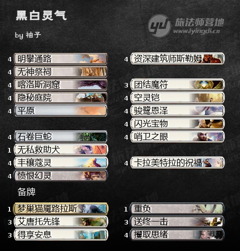 因为环境没有什么太大的变化,今天就讲一套老套牌吧,其实我自己仔细回想一下发现都二十多期了这么一套热门套牌我一直没讲也是挺奇怪的。那么废话不多说,让我们来聊聊今天的这套套牌——黑白灵气。
