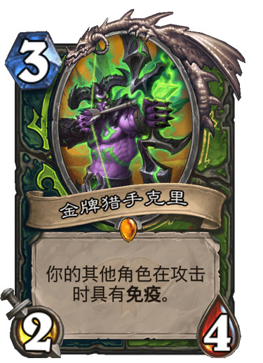 需要提出的是,如果对面携带了金牌猎手克里,我们还是比较难受的,幸好现在标准大多数t7猎人都舍弃了这张卡,本人就曾被对面t7猎人白吃过2个67,最终输掉了比赛。(ps:也希望玩t7猎的玩家不会看到我这篇文章)