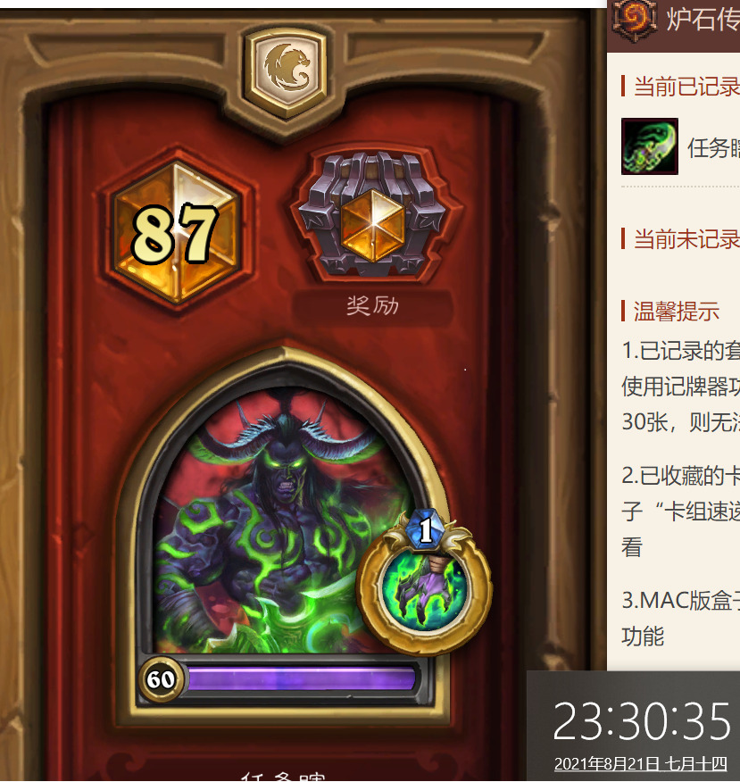 新补丁第一天我曾玩过半天杰斯任务瞎,体感一般。在我看来,邪能体系与任务体系的协同性并不好。在三四回合任务启动的回合,手里有邪能牌会非常尴尬,而目前环境对速度要求非常高,卡一回合可能就意味着这把已经输了。