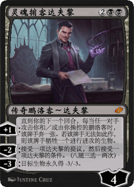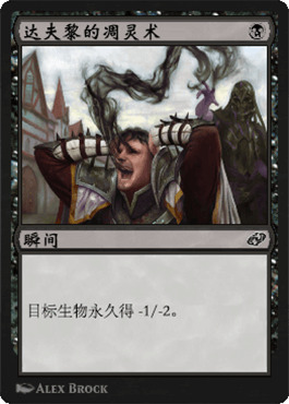 最后我们聊聊一定“永久”被大家讨论的达夫黎的凋灵术,因为环境中有血侯饥渴和送终一击这样的一费解牌,但是恒久给一个特定威胁-1/-2不一定就不香。(似乎对当前猫炉和凤凰套牌有奇效,但是我并不觉得这就是使用这张作用有限的解牌的原因。)