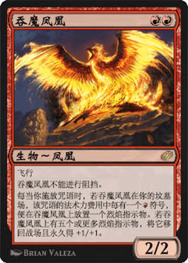我们只有一张S级单卡,说实话在吞魔凤凰是环境标杆还是特定套牌里的标杆这个让我也颇为纠结。但不管怎么说,如果说近几年我们学到了什么的话,那一定是:如果一张牌可以自己免费从坟墓场返回战场,那构筑里就会有他的一席之地。虽然和弧光凤凰一众比起来没有敏捷,但是2费2/2还是不错的身材,而且返场后是3/3(最终甚至是4/4,5/5)就很大,对面就不得不忍一下。想要把吞魔凤凰加到套牌里的要求是很多有红色法术力符号的咒语,但我看史迹里很多构筑思路都可以满足这个要求。更妙的是史迹里有丧信掠夺,你可以直接把这火鸟弃到坟墓场而不必先拍出来。我们可以一回合丧信掠夺弃凤凰,然后二回合放几个火树族密使加点别的,就可以把把3/3的凤凰拉出来了,这一波操作下来基本上就赢了。除了纯红快攻之外,吞魔凤凰完全可以加入到弧光凤凰套餐或者备牌里,来应对一些对手去除很多的对局。