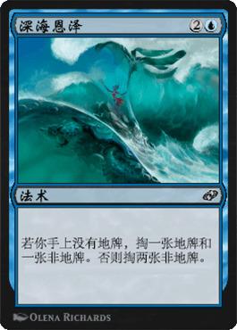 深海恩泽与虚相之攫不一样,它似乎是卜卦的强化版。但卜卦本身就不太可用。我觉得一个稍稍补强的奥术智慧是没能力与展现迭代和揭帷娜尔施之类的赚手牌能手平起平坐的。