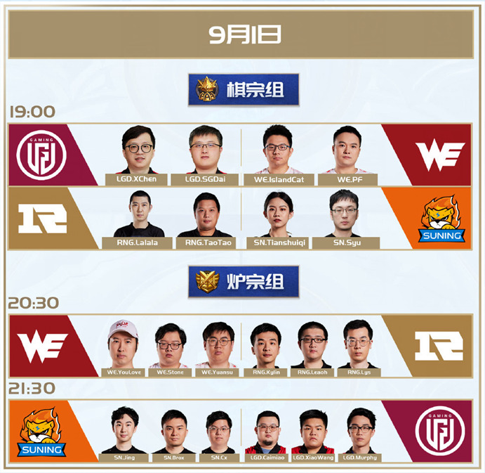 黄金战队联赛2021下半赛季今晚继续。今晚炉宗棋宗都是21.2补丁的首战。