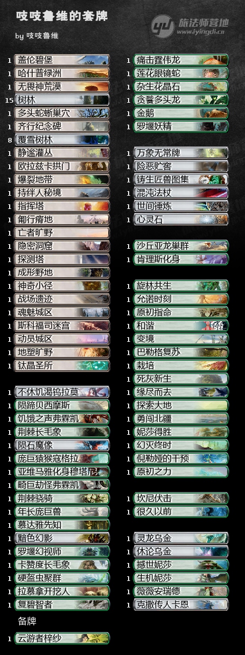 一般威胁:亚维玛雅化身穆塔尼(其实和主将很契合,但是感觉太傻了)、荆棘骁骑(朴实)、贪餮多头龙(兼职去除)、年长庞巨兽(功能不错,但太fair了)、克撒传人卡恩(用起来一般,可以优化掉)、沙丘亚龙巢群(有时有奇效,多数时候都特别呆)、卡赞度长毛象(90%是个地)、硬甲虫聚群(费用尴尬,能下主将不想下他,下了主将没地下他也没有用,偶尔奇效)、旋林共生(就是个掉血地)。