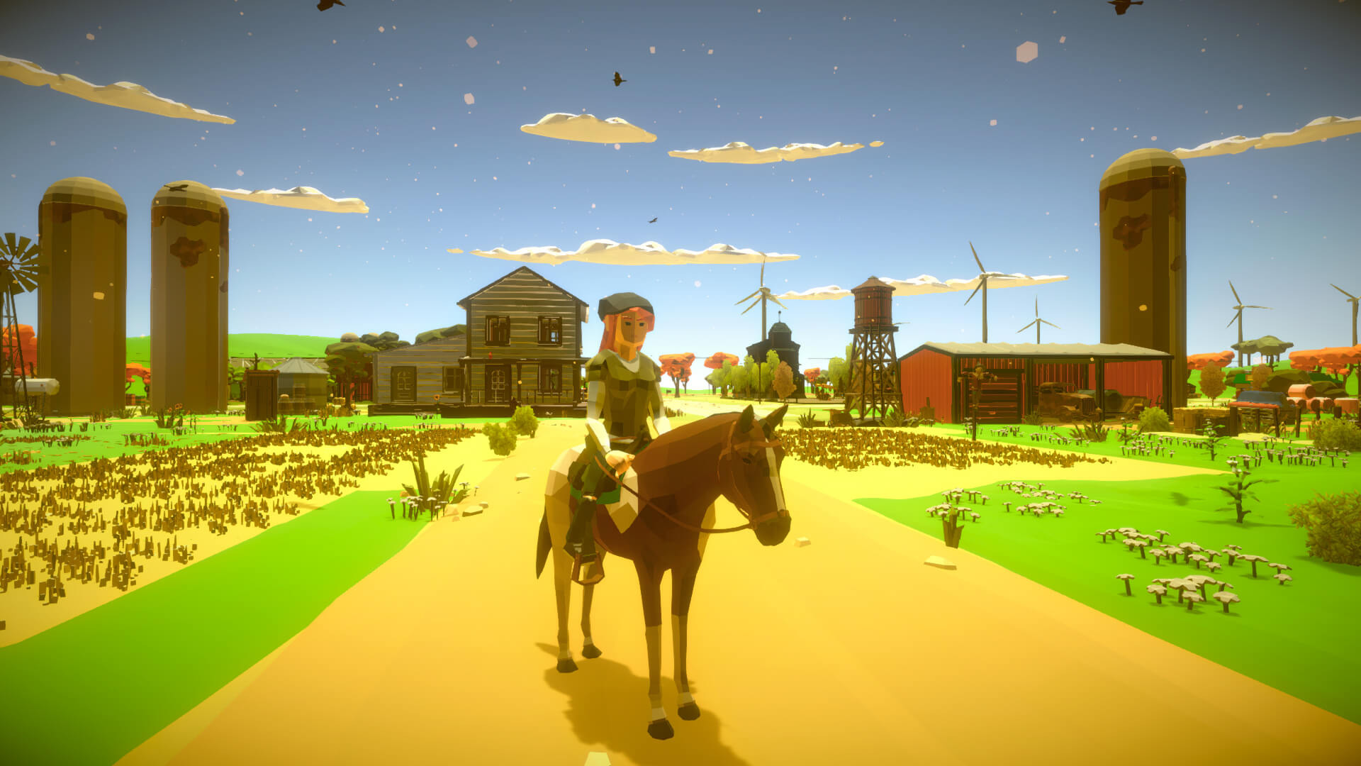 - 乘坐多种交通工具!不要把你的腿或你的马累坏了——选择合适的交通工具来完成任务。对一个农民来说,收成有点太多忙不过来了?投资一些重型机器来完成这项工作。