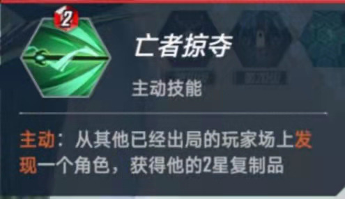 主动技能,从其他已经出具的玩家场上发现一个角色,获得他的二星复制品。