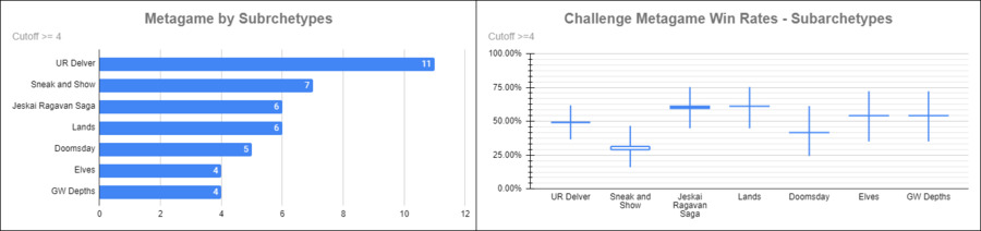 周日的挑战赛有70人参加,下面是套牌分布情况