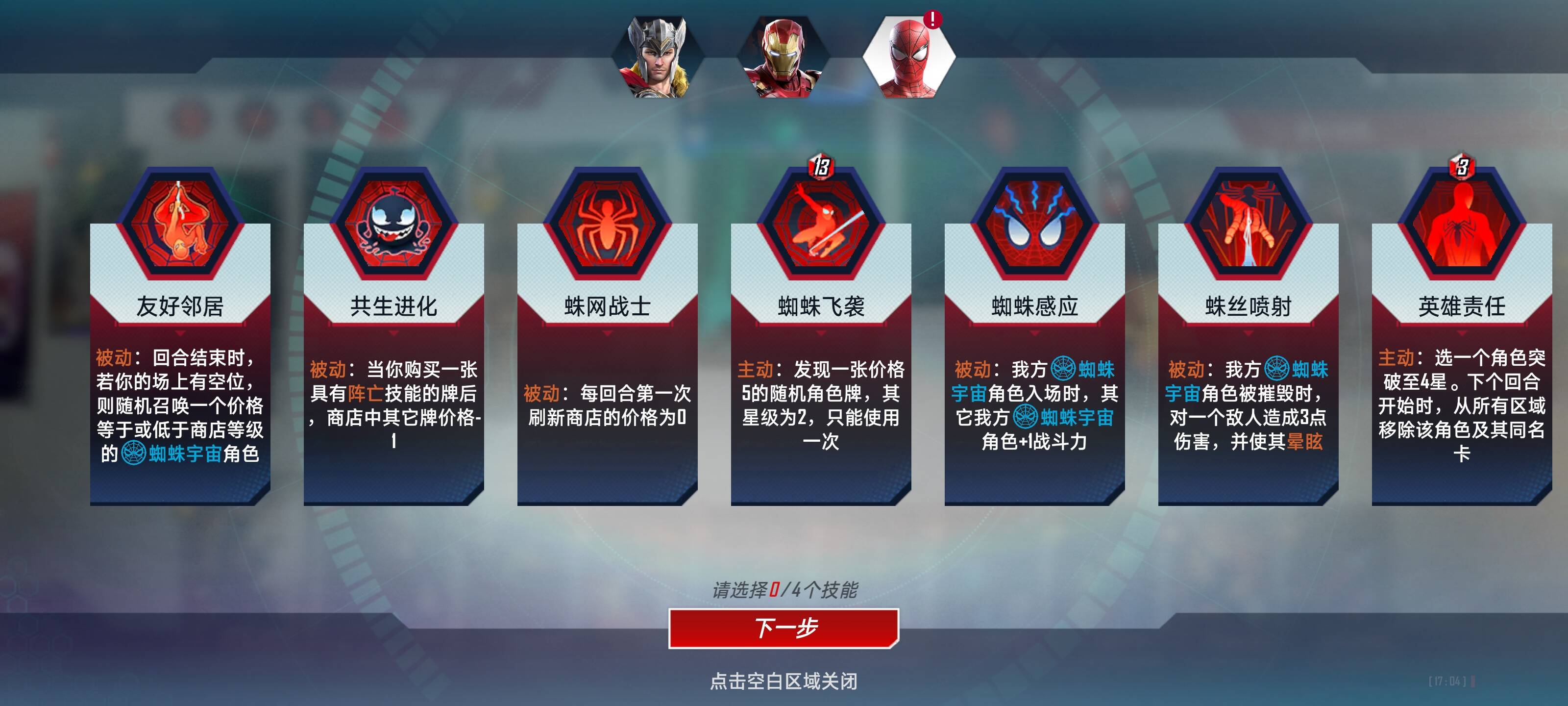 友好邻居:经济技能;留个空位白嫖卡牌,嫖到蜘蛛侠、绿魔血赚,蛛丝、蜘蛛女不亏;