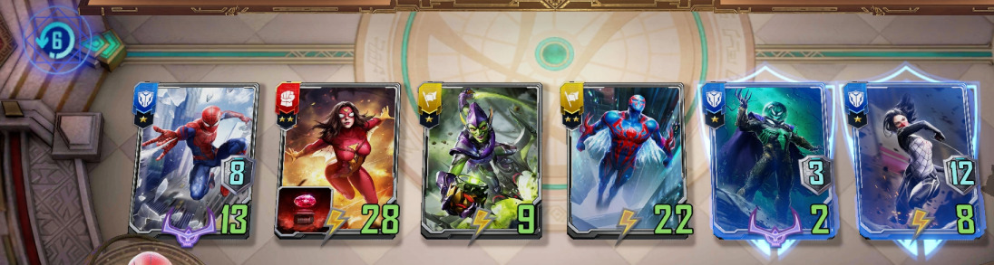 【绿魔】:至少2,绿魔作为中期核心,来的早可以触发蝴蝶效应,建立优势;来的晚(7回合之后)就没那么重要了,可以放弃然后专心培养蜘蛛侠;