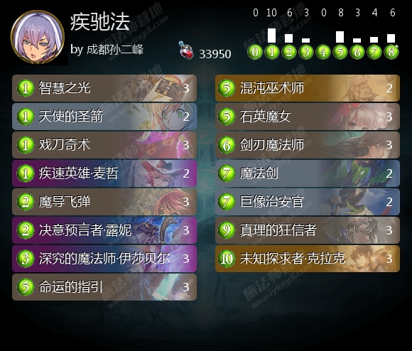 开门法&疾驰法:上一张撼动指定无限双模式法师的卡是露妮,而如今便是大奶怪:深究的魔法师·伊莎贝尔 。如今的开门法拥有这张1费全场打2的解卡,对快攻不再全靠弹弹,也不需要纠结带不带未来。而融合体系,更是解决法师唯一的问题:前期上手魔剑魔书卡手。并且奶怪融合的打10回10和打3,甚至使开门法不再依赖开门取胜。只要法术打脸抢到10血,便可爆破。这也是疾驰法崛起的原因。伤害非常非常充足。在开门一次的情况下,一张奶怪就等于5攻加10伤。15伤。现在很难期望法师一次开门伤害不够了。在漫长的时间里,法师最优进化随从都是老头,0费抽2进化增幅1。而奶怪连这一点都撼动了,奶怪进化增幅一次,回复pp1点,还给一张宝贵的命运指引。而5费的命运指引可以通过魔剑直接减少到0费。这就是下文会推荐法师上分的原因,真的太强了。