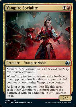 只要本回合对手失去过生命,每个由你操控的吸血鬼进场时额外有一个+1+1指示物