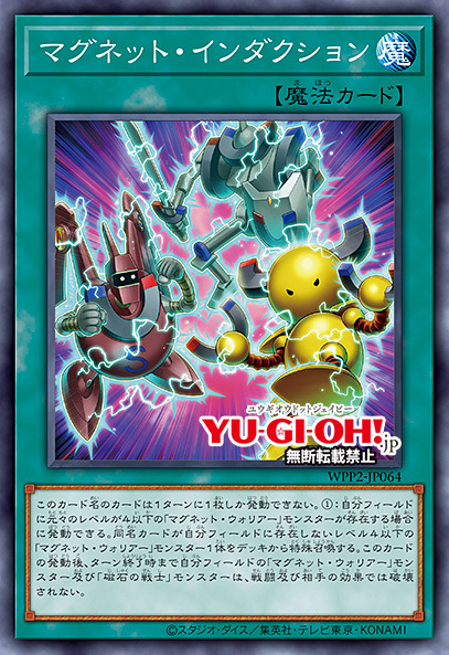 ①:自己场上有原本等级4以下的「磁石战士」怪兽存在的情况下才能发动。同名卡不在自己场上存在的1只等级4以下的「磁石战士」怪兽从卡组特殊召唤。这张卡的发动后,直到回合结束时自己场上的「磁石战士」怪兽以及「磁石之战士」怪兽不会被战斗以及对手的效果破坏。