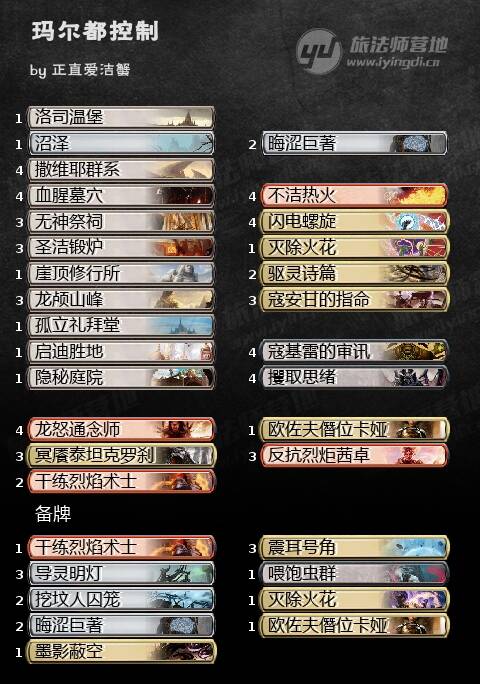 笔者也曾遇到过几个其他的玛尔都色组的控制,自认为发现了他们组牌上的一些误区(这也从另一个方面说明了牌表为什么是现在这个样子的原因):其一是选用费用过大的威胁(比如炎锁安戈斯,灵龙乌金,提勃或某些奇奇怪怪的巨大生物),这些牌未免太不实际,严重放大了上面所说的玛尔都控制的弊端。其二是选用过于夸张的解牌,比如bo3主牌进扫(而且还往往是什么神愤预示扫之流),进诸如艾紫培复生记之类的牌。以上两种组法,选牌闳大不经,只能说好看,实际百无一用,恰似格力极里的老龙。