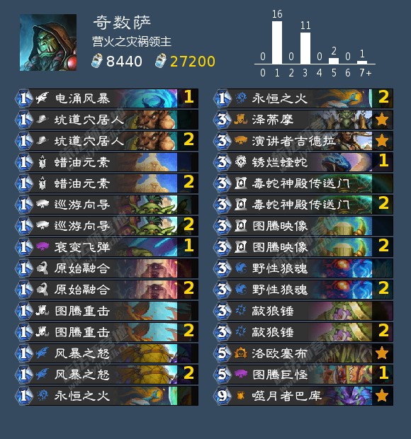 来自营火之灾祸领主的奇数萨,他使用这套卡组以37胜16负的战绩从钻5打到了传说四百多名。