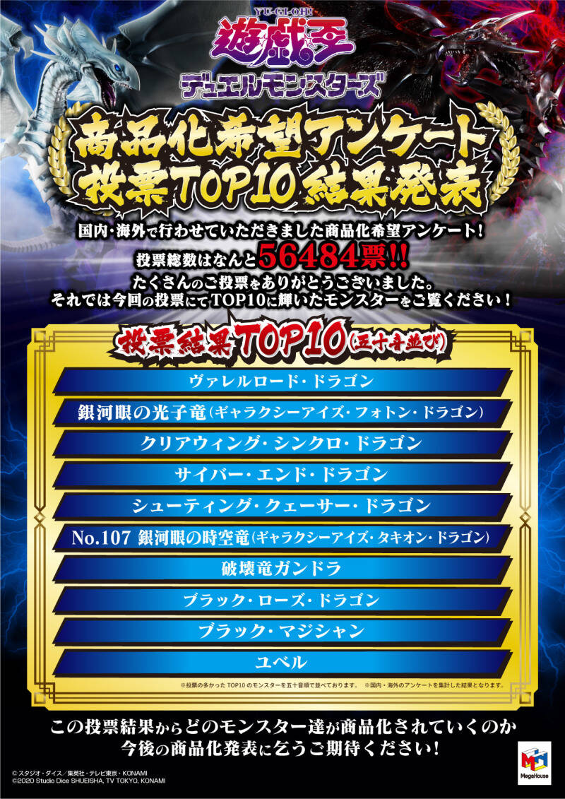 日本模型商 MEGAHOUSE 推出的怪兽主题模型『ART WORKS MONSTERS』系列在推出青眼白龙、混沌士兵、真红眼黑龙等出自《游戏王》的怪兽后获得相当好评,本月发表网罗日本国内外消费者意见的『游戏王怪兽模型商品化问卷』结果,列出呼声最高的前 10 名怪兽!