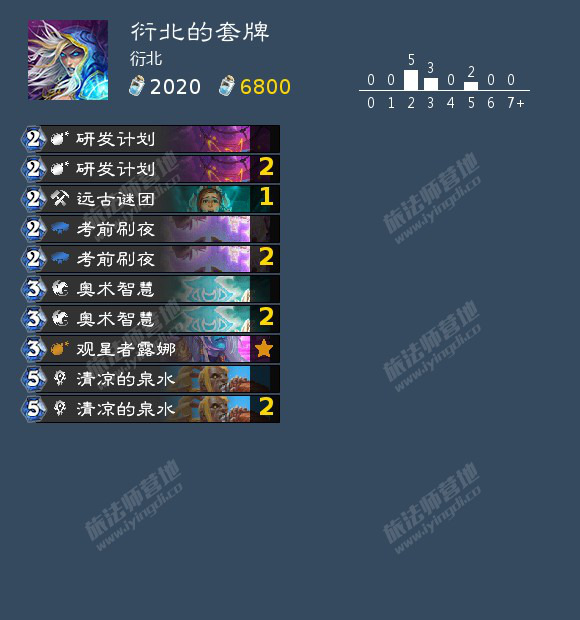整套卡组我一共带了十张过牌,研发计划和奥数智慧不用多说,老常客了,泉水因整套卡组的随从只有五个,所以收益也很高,是非常优质的过牌。远古谜团用来定向检索冰箱也很nice。当然,最厉害的还是露娜,在手牌情况极差无过牌的时候,露娜就是发动机,super奥数智慧加神恩术。没有露娜就没有奇迹。至于考前刷夜,因为我还是喜欢保证卡组的流畅性,于是满编了,各位可以自行抉择带一张还是两张。