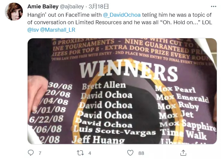 比换牌更重要的是,我在Eudo得到了更多正面的反馈,让我感觉竞技万智牌已经融入了我的血液。Eudo开始办了一个成为湾区盛会的赛事——Power月赛。这项赛事包含10场比赛,每个月他们会送出一张P9,最后一场是黑莲花。湾区本来就有一股特选(Vintage)的风潮,而Eudo的赛事让它更加盛行。通过这项赛事我认识了很多很棒的人,开车去湾区玩也成为了我生活中非常重要的一部分(当时我还住在加州大学戴维斯分校那边)。