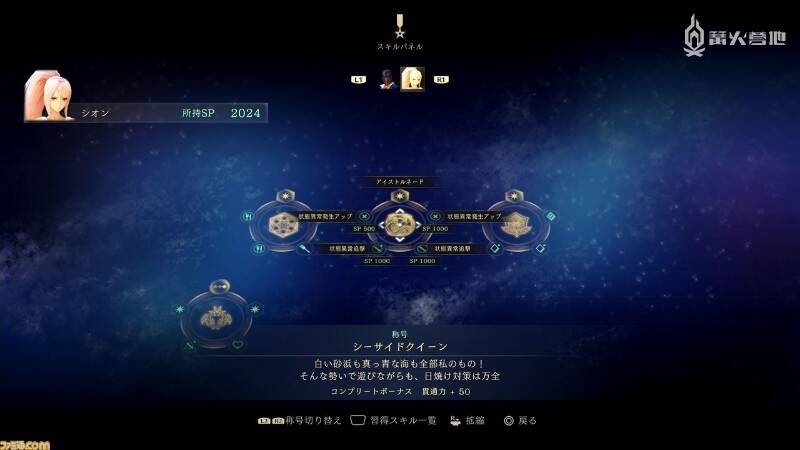 此外,玩家还可以消耗技能点数(SP)来帮助角色习得各种技能,SP 可通过战斗和完成任务来获得。角色可习得的技能将与「称号」系统挂钩,这算是本作独有的一个机制。