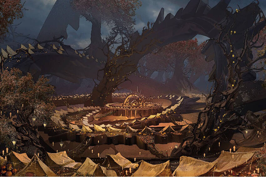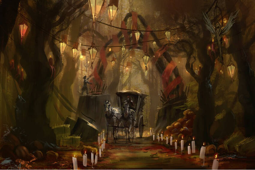 沃文森的树林在蜡烛、提灯,以及魔法火光的照耀下闪闪发光。纸条与缎带装饰着树枝。沿着道路前往收成节的旅人也能看见柳树上"飘着"狼人、殭尸、吸血鬼,以及其他可怕生物的肖像,它们将在节庆期间被人们得意又轻蔑地烧毁。