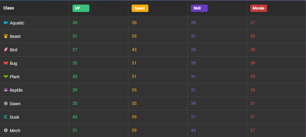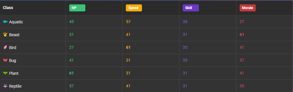讲完了属性,我们来看看,宠物的种族对属性有哪些影响。宠物的属性有两部分组成,第一是每个种族都有基本属性,详情见下表。第二,每个宠物由6个部位组成,除了我们提到的角(horn),嘴(mouth),背(back),尾(tail)4个部位,还有眼(eyes),耳(ears)2个部位,不同于前4个部位,眼,耳并没有卡牌(不排除未来会加卡牌),只是单纯的影响宠物的属性与外表。每个部位所属的种族,会有不同的效果。