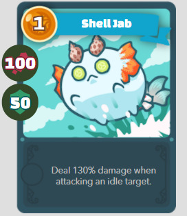 举个例子,比如一张鱼卡Shell Jab,基本伤害为100,目标为兽,虫,机械时, 会对目标造成115的伤害;而同一张卡,目标为爬,草,黄昏时,会对目标造成85的伤害;还是这张卡,目标为鱼,鸟,黎明时,会对目标造成100的伤害。这里边有两点需要注意:第一,这里的相生相克关系是指,使用的卡牌所代表的的种族,与被攻击的目标宠物的种族,而不是这个卡牌的持有宠物的种族。解释一下,使用鱼卡Shell Jab的宠物本身可以是任何种族,因为,这张卡是一个角卡池中的卡牌,虽然卡牌本身属于鱼族,但是宠物本身可以是兽,当我们使用这张卡时,动画效果是一只兽在进行攻击,如果被攻击对象是个草族,那么我们能造成的伤害是85,鱼被草克制,而不是115, 兽克制草。第二点需要注意的是,当使用卡牌的宠物种族与卡牌本身的种族相同时,额外造成10%的效果。这个比较好理解,比如鱼卡Shell Jab,它的攻击是100,防御力是50, 如果持有该卡的宠物种族为鱼时,实际效果为 攻击力110,防御力55。