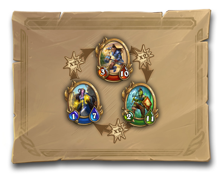 - 护卫通常拥有较高的属性值,但技能施法速度较慢。对斗士造成2倍伤害。