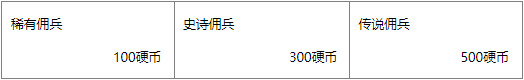 每位佣兵都具有三种稀有度(稀有、史诗、传说)中的一种。不同稀有度佣兵的区别主要体现在知名度、背景强度等方面,对实际强度影响不大。不同稀有度的佣兵的合成花费如下: