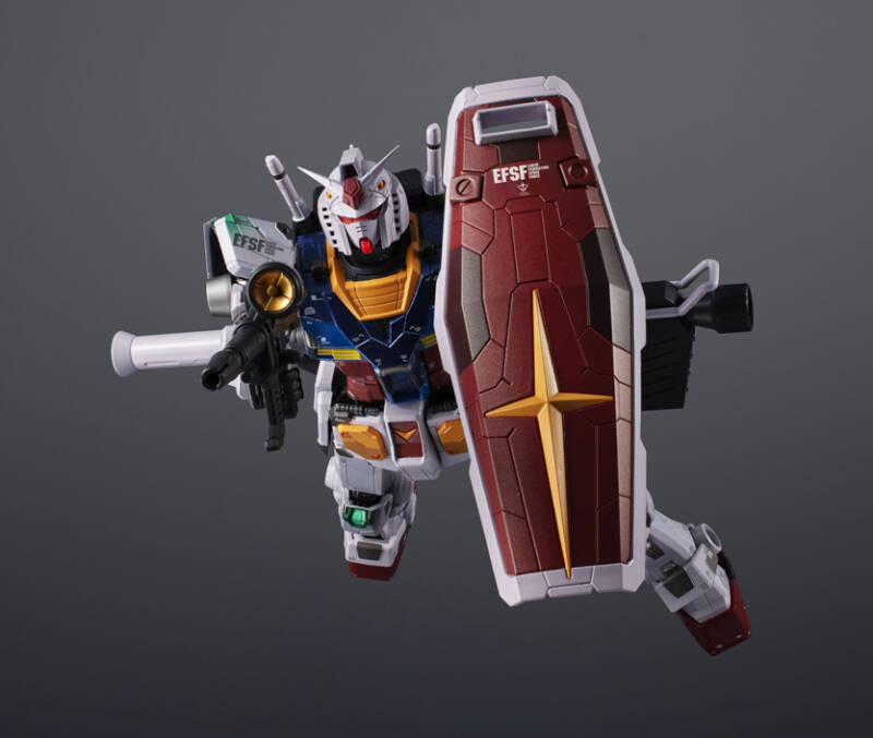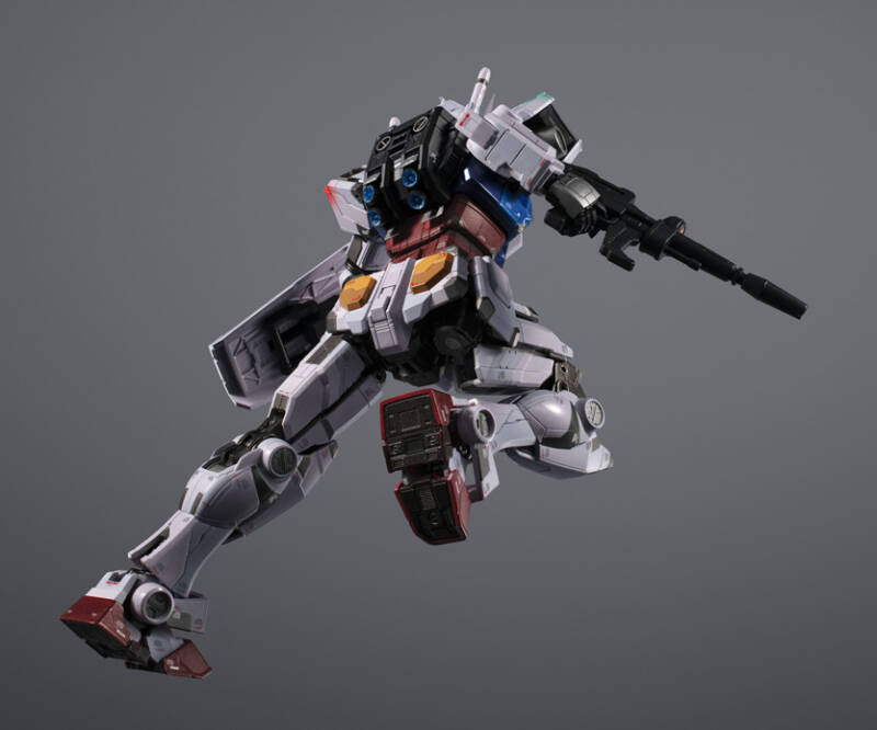 「超合金×GUNDAM FACTORY YOKOHAMA RX-78F00 GUNDAM ‐Night illuminated ver.-」具备高锐利度的精密装甲造型,将涂装配色替换为设施夜间演出时的意象,装甲色彩更深沉并强化肩部、膝盖的航行灯亮度。多处关节采用合金材质制作,把玩时更具重量感。大腿装甲具备滑动机构,能在膝关节弯曲时向后滑动、减少干涉。头部主.副摄影机、胸部散热口更内藏发光机构!