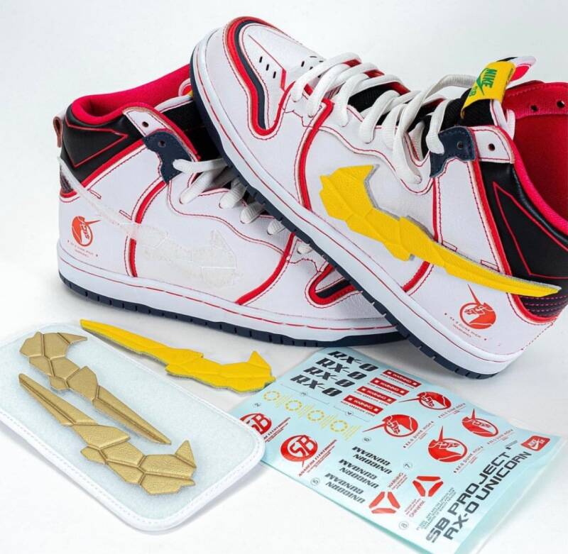 重量级的跨界合作NIKE SB×《机动战士高达UC》预计将推出 RX-0 独角兽高达、RX-0 独角兽高达二号机 报丧女妖配色两款限定鞋款,首先在台湾正式发售的「SB Dunk 高筒鞋 Gundam Project Unicorn White」,将 DIY 创意和科幻时尚带进玩趣风格的 SB Dunk 系列,在鞋款中融入独角兽高达代表性的特色红、黄配色;细节方面更是把头上特色的V字角注入 NIKE 标志性的勾勾 LOGO,透过可拆式魔鬼毡 Swoosh 设计,能大幅改变出简洁/高调的不同造型!另外还有独角兽高达LOGO、机体编号等联名贴纸,鞋尖、缝线及内里丰富的细节**满足鞋迷与高达收藏家!