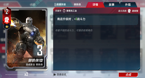 钢铁侠1型在前期有着非常不俗的战力。虽然它初始战力不高但是最大的好处在于可以让己方在攀升科技的同时也提升战力。如果从2级商店就开始升级,那么2星的钢铁侠1型在商店等级4的时候就可以有15点战力,作为一个2星的卡牌这已经是非常难得的战力了。