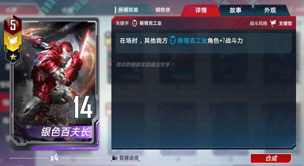 在场时,其他我方斯塔克工业角色★+7/★★+14/★★★★+28战斗力