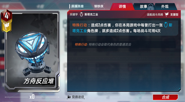 特殊行动:造成2点伤害,你在本局游戏中每曾打出一张斯塔克工业角色牌,就多造成2点伤害,每场战斗可用4次。
