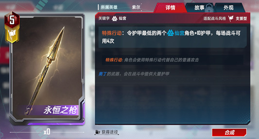 可以说是奥丁的专属武器。其实作为一个价值5颗宝石的卡牌,只能提供20点护甲显然是性价比较低的一个能力。并且支援型的属性让大多数仙宫角色无法佩戴这把武器,也只有在结合奥丁的能力之后,这件武器才对得起它的价格。