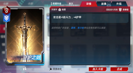 确实如卡牌描述中所说的,在仙宫体系下守护之剑的适用范围很广。最适合的莫过于索尔蛙以及阿斯加德天马了。他们属于费用与守护之剑临近的单位,同时守护之剑产生的护甲也可以帮助他们触发自身的特效。而且战斗中增加护甲还能在后期触发奥丁的闪电特效等等,算是雷神之锤出现之前最为好用的一件武器。
