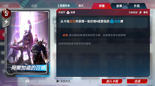 从卡池发现并获得一张价格4或更低的仙宫牌。