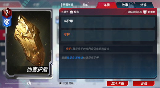 可以给一个角色添加守护效果。此外增加4护甲的效果并不能有效的保护一个角色。所以这个装备在实战中最主要的用途反而是让那些有阵亡效果的角色尽快成为敌人集火的目标。比如蜘蛛侠、毒液、亥伯龙等等。