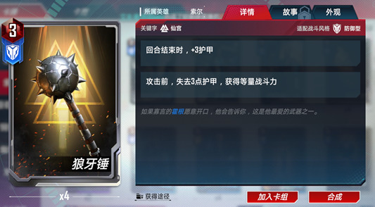 可以算得上是霍根的专属武器。狼牙锤失去护甲时获得等量的战斗力与霍根的能力相得益彰。或者后期作为雷神之锤的暂代品装备给雷神索尔也还不错。