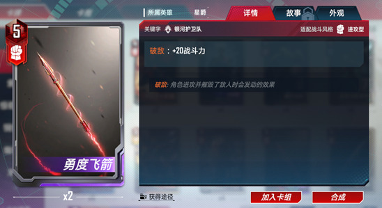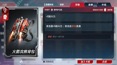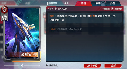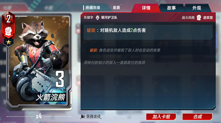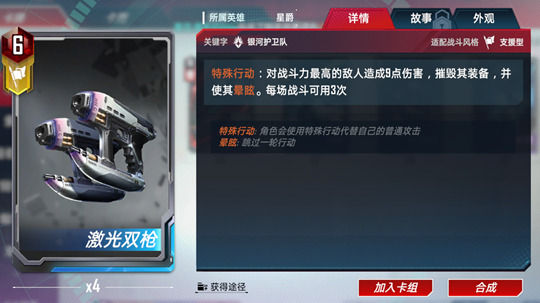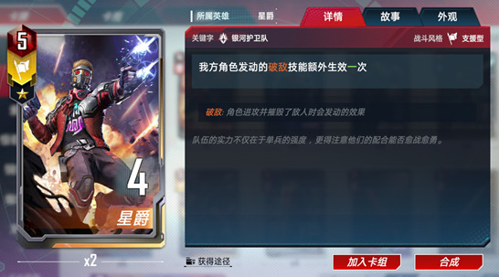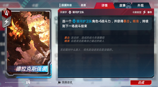 选一个银河护卫队角色+5战斗力,并获得暴击、精准,持续到下一场战斗结束。