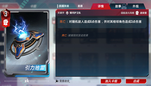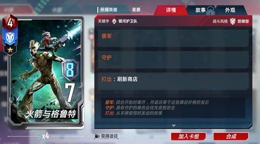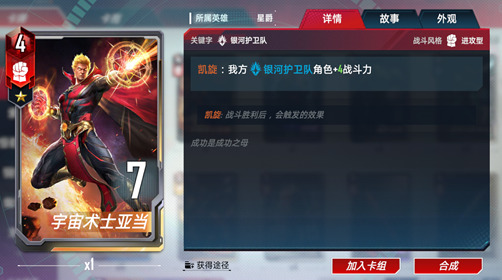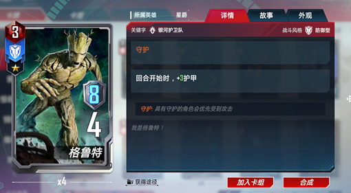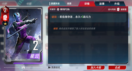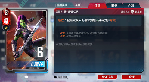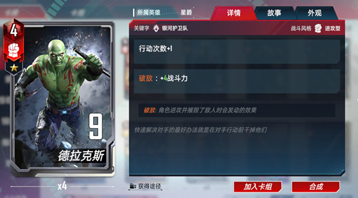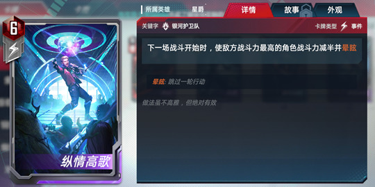 凯旋:我方银河护卫队角色★+4战斗力/★★+8战斗力/★★★★+16战斗力。